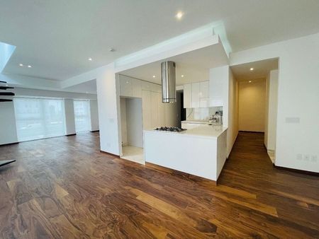 El departamento cuenta con amplia sala y comedor, cocina equipada, 3 recamaras con 2 baños completos, área de lavado y cuarto de servicio en la parte de arriba del departamento hay un inigualable roof garden rodeado de áreas verdes y bodega.